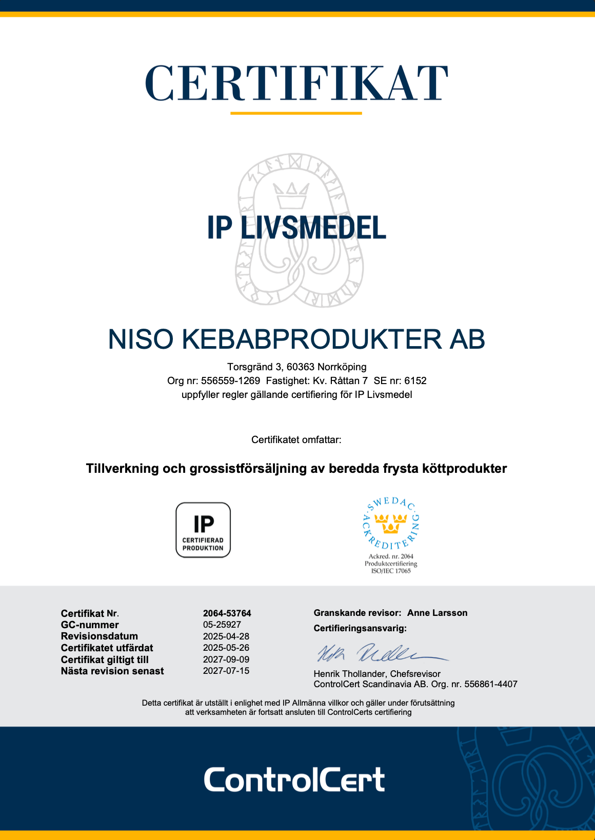Vår affärsidé är att erbjuda våra kunder högkvalitativa matprodukter som stämmer överens med deras önskemål och krav.